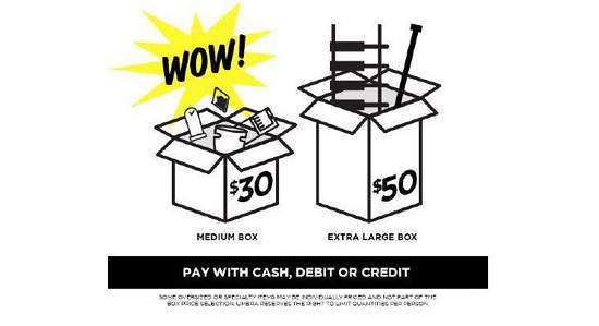 در این حراج کافیست که یک جعبه سایز متوسط به قیمت سی دلار و یا یک جعبه بزرگ به قیمت پنجاه دلار خریداری کنید ، تمام چیزهایی که در این جعبه جای بگیرد را میتوانید با خود ببرید.